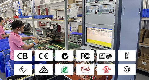 公司產(chǎn)品已通過(guò)多項(xiàng)國(guó)際和國(guó)內(nèi)權(quán)威認(rèn)證,包括:ISO9001質(zhì)量管理體系認(rèn)證;中國(guó)CCC認(rèn)證;歐盟CB認(rèn)證、CE認(rèn)證GS認(rèn)證、RoHS認(rèn)證;美國(guó)FCC認(rèn)證、ETL認(rèn)證、UL認(rèn)證(UL1310標(biāo)準(zhǔn)、UL60065標(biāo)準(zhǔn)、UL60950-1標(biāo)準(zhǔn));日本PSE認(rèn)證;韓國(guó)KC認(rèn)證、KCC認(rèn)證;印度BIS認(rèn)證